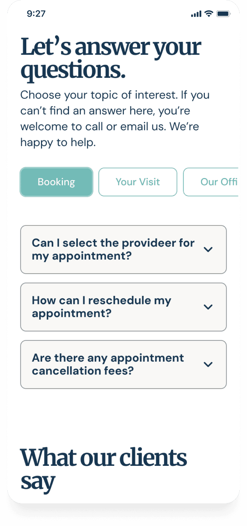 By automating the appointment request flow, we significantly reduced phone dependency, allowing front-desk staff to focus on high-value in-clinic patient care.