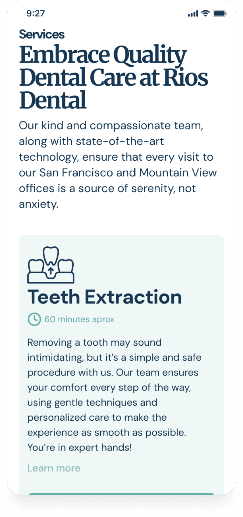 To eliminate the "generic feel" of stock photography and establish genuine clinical authority, I directed and produced a custom photoshoot for Rios Dental. Every visual was strategically composed to align with the new brand values and website aesthetic, ensuring a cohesive patient experience from the first click to the physical visit.