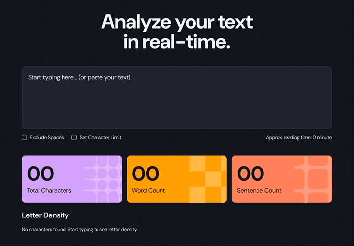 A minimalist, real-time word & character counter with dark mode and analytics.
